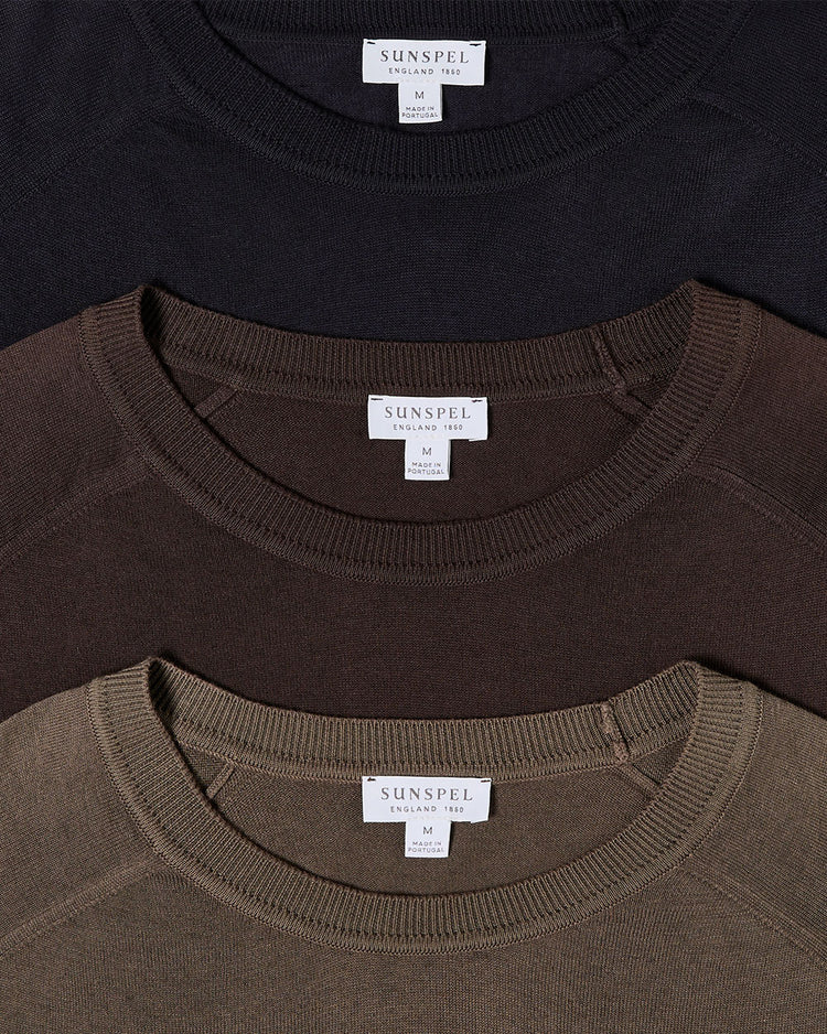 Eine moderne Interpretation des klassisch athletischen Sweatshirts. Es wurde vom ehemaligen Sunspel Kreativdirektor Jonathan Anderson entworfen und zeichnet sich durch eine elegante Passform und typische Sweatshirt-Details, wie den V-Einsatz und die Rippbündchen, aus.